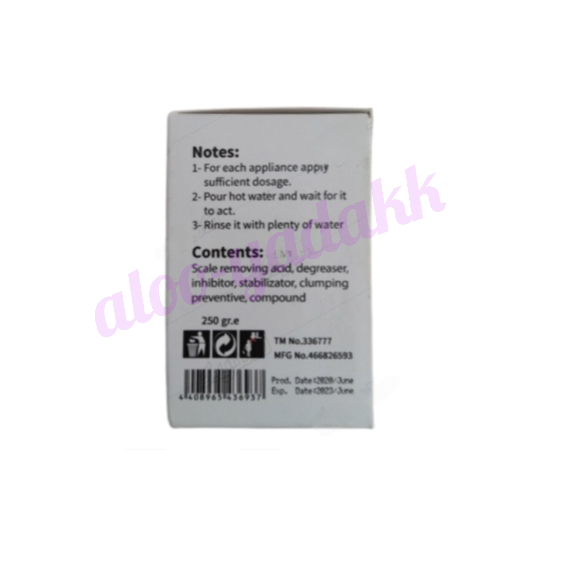 با استفاده منظم از این جرمگیر، قطعات داخلی دستگاه همیشه تمیز مانده و شستوشویی باکیفیتتر خواهید داشت. هر بسته شامل یک عدد پودر جرمگیر است که برای یک بار استفاده مناسب میباشد.