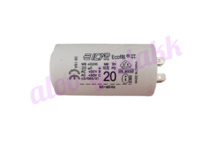 خازن ۲۰ میکروفاراد ماشین لباسشویی ایکار قطعهای کلیدی برای راهاندازی موتور و عملکرد بینقص دستگاه است. این خازن انرژی لازم برای شروع چرخش موتور را تأمین کرده و از آسیب به موتور جلوگیری میکند.
